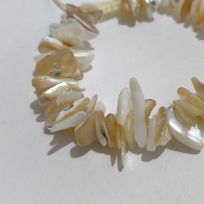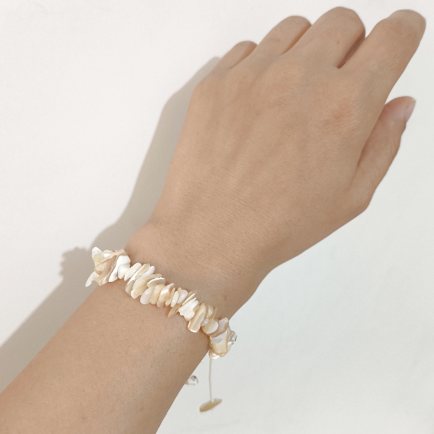 طراحی دستبند با قطعات نامنظم و طبیعی صدف انجام شده که ظاهر خاص و متفاوتی بهش داده. بند قابل تنظیم باعث میشه برای اندازههای مختلف مچ مناسب باشه و موقع استفاده حس راحتی داشته باشه. وزن سبک دستبند هم باعث میشه برای استفاده روزمره کاملاً ایدهآل باشه.
