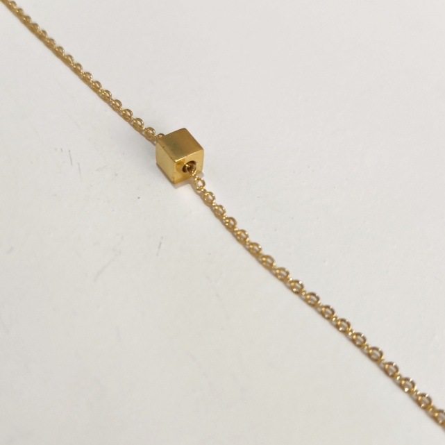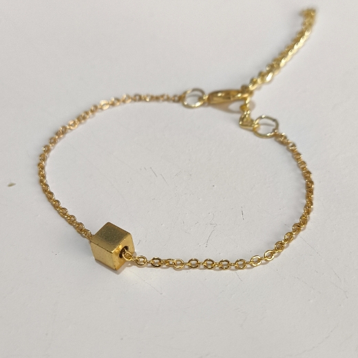 این دستبند برای مچهای ۱۵ تا ۲۱ سانتیمتر مناسبه و بهخاطر قفل قابل تنظیم، روی دست خیلی راحت فیت میشه. مکعب وسط دستبند متحرکه و موقع حرکت دست، یه جلوه ظریف و جذاب به استایل میده بدون اینکه شلوغ به نظر بیاد.