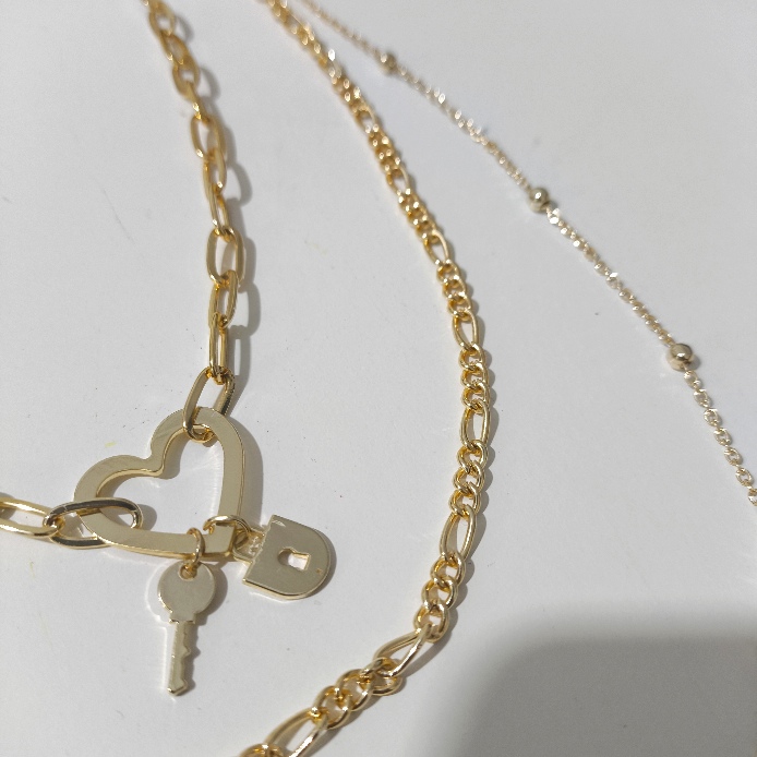 اگه دنبال یه اکسسوری هستی که به تنهایی کار چند تا گردنبند رو برات انجام بده، این مدل گردنبند سه ردیفه طلایی مدل قلب و قفل بهترین انتخابه! ترکیب هوشمندانه زنجیرهای کارتیر، فیگارو و توپی در کنار هم، یه لایهبندی بینقص و ترندی ایجاد کرده که روی گردن و یا حتی روی هر نوع لباسی، از شومیزهای ساده تا پیراهنهای مجلسی، عالی میشینه.