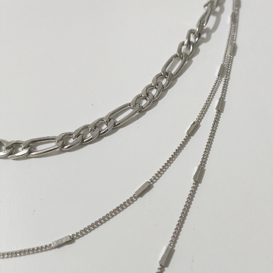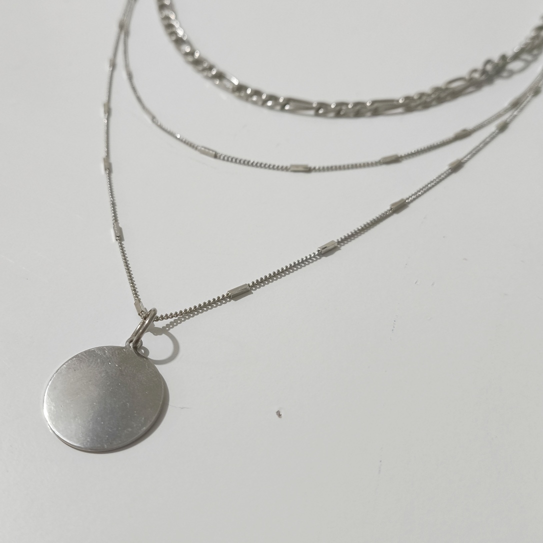 لایه اول یه زنجیر فیگاروی کلاسیکه، لایه وسط ظرافت رو به رخ میکشه و لایه آخر هم با اون پلاک دایرهای آینهای، تموم نگاهها رو به خودش خیره میکنه.