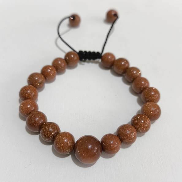 دستبند سنگ دلربا و حدید طلایی با گره کشویی