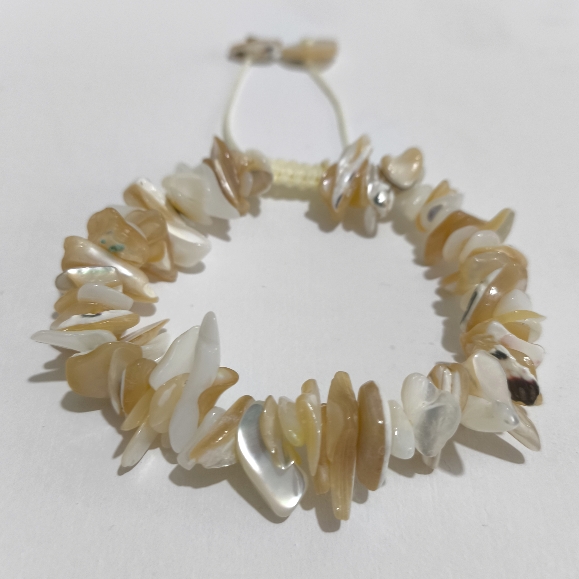 دستبند سنگ صدف آمریکایی با پلاک لوزی و گره کشویی