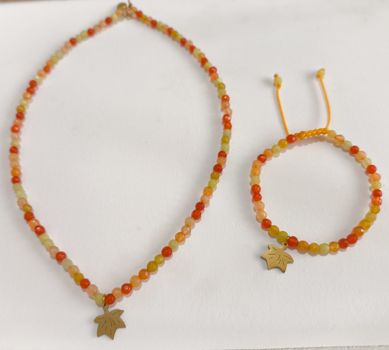ست دستبند و گردنبند سنگ جید طرح پاییزی