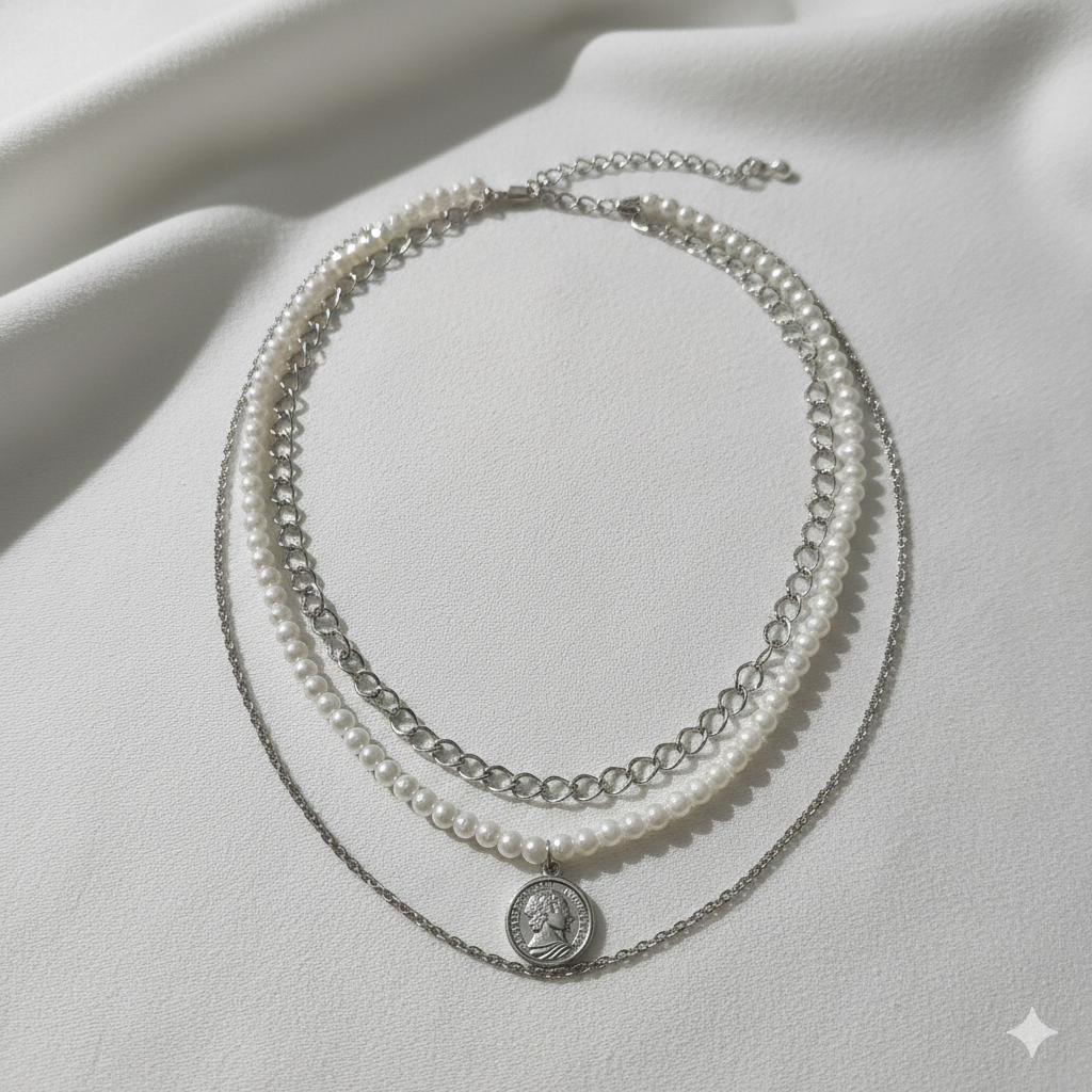 ناموجودگردنبند سه ردیفه زنجیر و مروارید مدل الیزابت